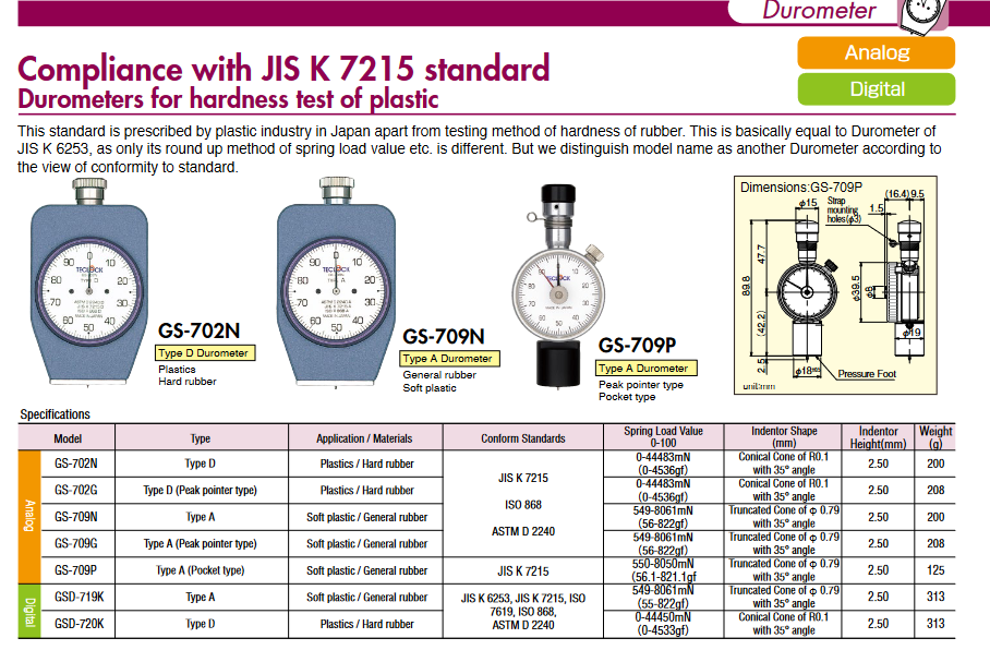 TECLOCK GS-709P Durometer for Hardness Test of Plastic