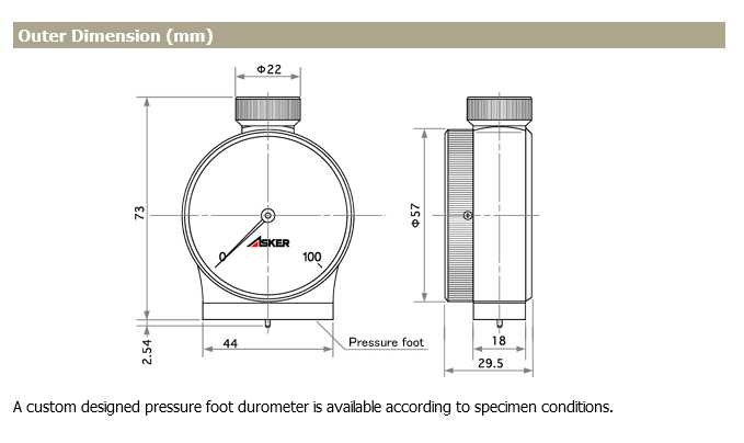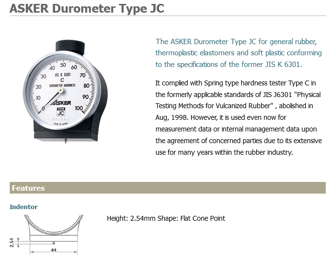 Type A Durometer (ASKER A type), conforming to JIS K 6253-3 is the most popular type of durometer for measuring rubber hardness.