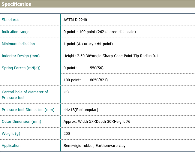 Type A Durometer (ASKER A type), conforming to JIS K 6253-3 is the most popular type of durometer for measuring rubber hardness.