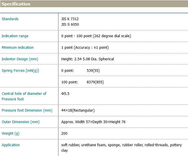 Type A Durometer (ASKER A type), conforming to JIS K 6253-3 is the most popular type of durometer for measuring rubber hardness.