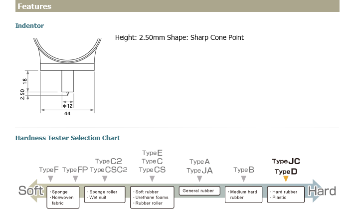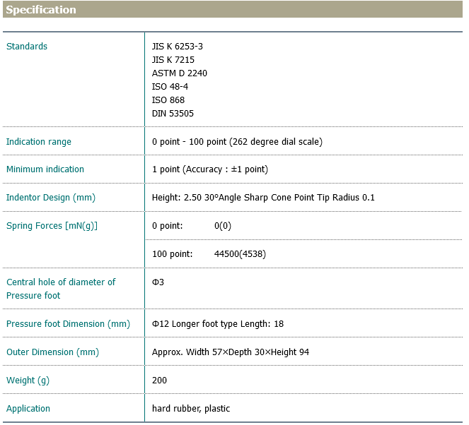 Type A Durometer (ASKER A type), conforming to JIS K 6253-3 is the most popular type of durometer for measuring rubber hardness.