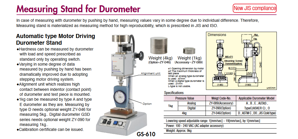 Teclock GS-610 Automatic type Motor Driving Durometer Stand